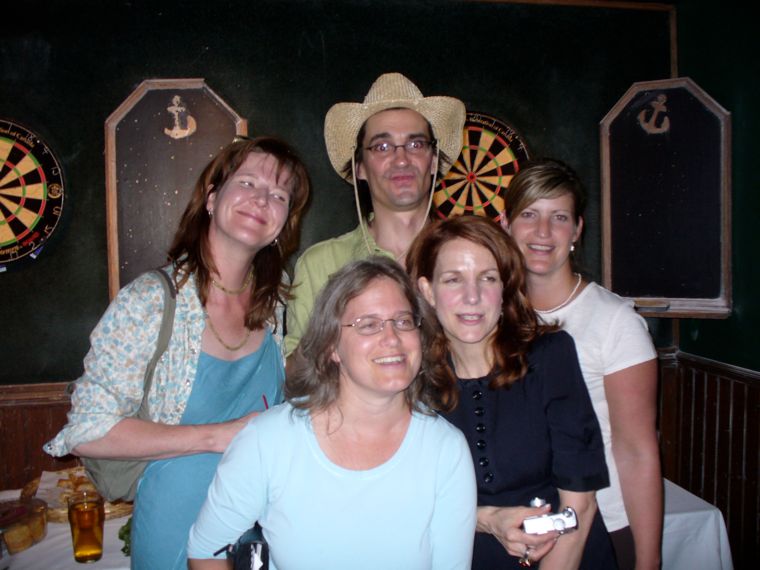 Claire Hill, Alison Gilmour, Lara Davis and Jeanne Holliss with Perry Johnson